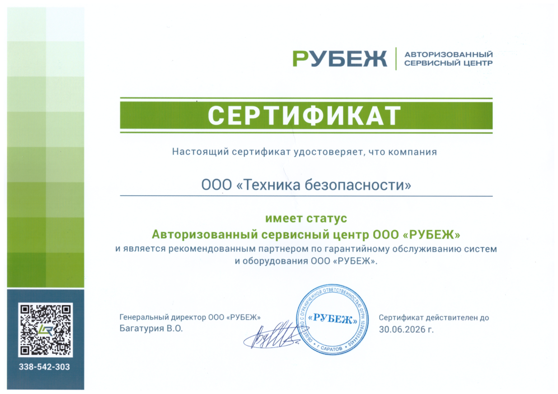 Компания Техника безопасности — официальный дилер и авторизованный сервисный центр ГК Рубеж, ведущего производителя интеллектуальных систем безопасности в России и СНГ.